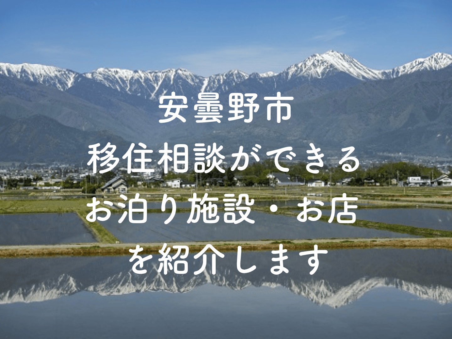 移住の第一歩は、現地に来て、見て、感じ、交流すること――。移住をお考えの皆さんに、安曇野で暮らす先輩たちのお話が聞けるよう、2つのリストを用意しました。ひとつは、施設予約時に移住相談もあわせて申し込みできる「移住相談ができるお泊り施設・お店リスト」。ふたつ目は、「移住者が営むお店リスト」です。 ・「移住相談ができるお泊り施設・お店リスト」 https://azumino-ijyu.jp/facility/#link1 ・「移住者が営むお店リスト」 https://azumino-ijyu.jp/facility/#link2