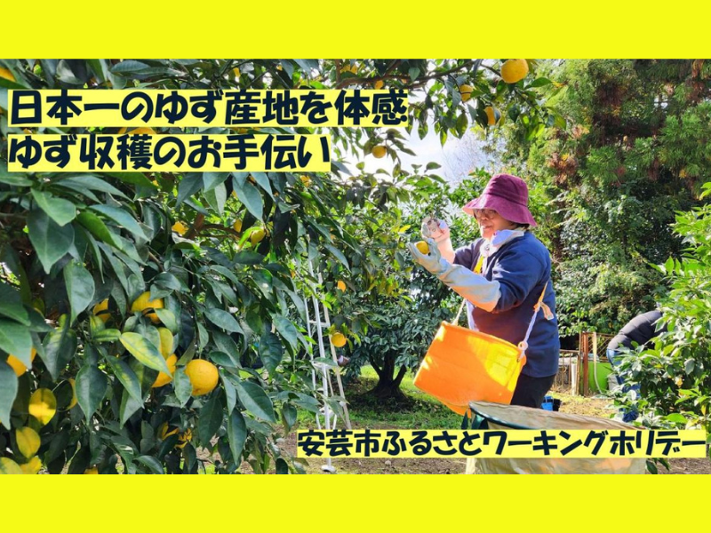 【参加希望者へのメッセージ】 11月はゆず収穫の繁忙期であり、中山間地域では人手不足が課題となっています。参加者は貴重な戦力として地域を上げて歓迎します。 宿泊費と交通費の一部には、補助金があります。 【受入(雇用)予定者数】 2名程度 【受入(雇用)形態/予定期間】 令和7年11月4日(火)~28日(金)のうち2週間以上 【主な業務内容】 ゆずの収穫 、選果、出荷 【就業時間】 8:00~16:00(うち休憩1時間) 【資格などの要否】 普通自動車免許(AT限定可) ※市内の宿泊施設(東風ノ家を斡旋できます) ・宿泊費:5,000円/日の助成あり