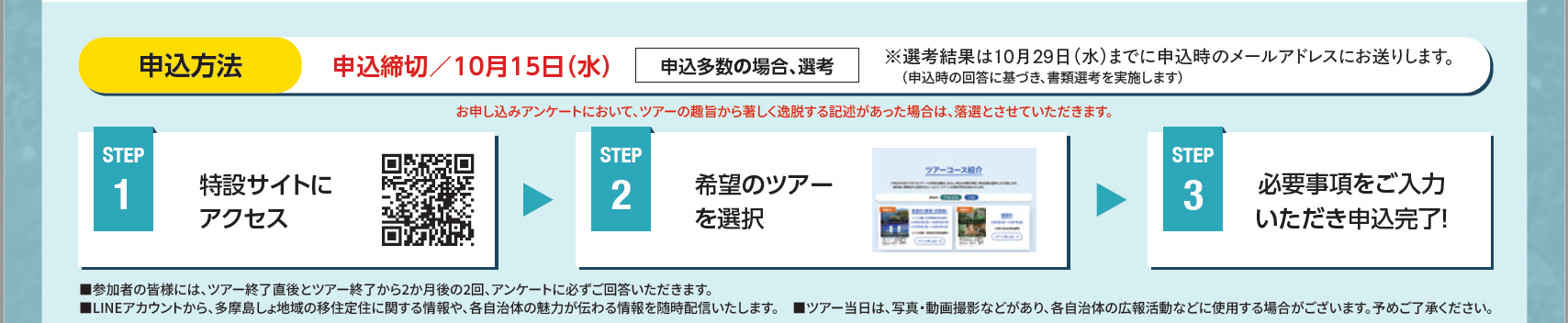 大島は、都心から約120km南の洋上に位置する伊豆諸島最大の島です。 中央には現在も火山活動を続ける三原山がそびえています。 また富士箱根伊豆国立公園に属し、自然と人のつながりを学べる場所として、日本ジオパークにも認定されています。 ▶大島町の詳細情報はこちらから https://pitamachi.com/municipality/detail/359 ーーーーーーーーーーーーーーーーー★★ 大島町地域交流ワーケーション体験ツアー ーーーーーーーーーーーーーーーーーーー ■開催日 12月3日(水)~12月5日(金) 2泊3日 ■旅行代金:無料! ※集合、解散場所までの往復交通費、個人的な買い物や飲食は各自負担となります。 ■募集定員:企業など3社 計15名 (最少催行人数:1社3名) ■集合・解散場所:竹芝客船ターミナル ■申込〆切:10月15日(水) ■申込方法 ①特設サイトにアクセス https://tokyo-tamashima-iju-fair-tour.metro.tokyo.lg.jp/workcation/ ②希望のツアーを選択 ③必要事項をご入力いただき、申込み完了! →選考結果は10月29日(水)までに、申込時のメールアドレスにお送りします。