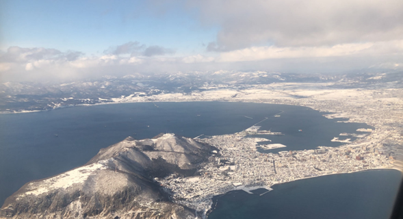 *お試し移住デスクのスタッフが飛行機から撮影した冬の函館市街