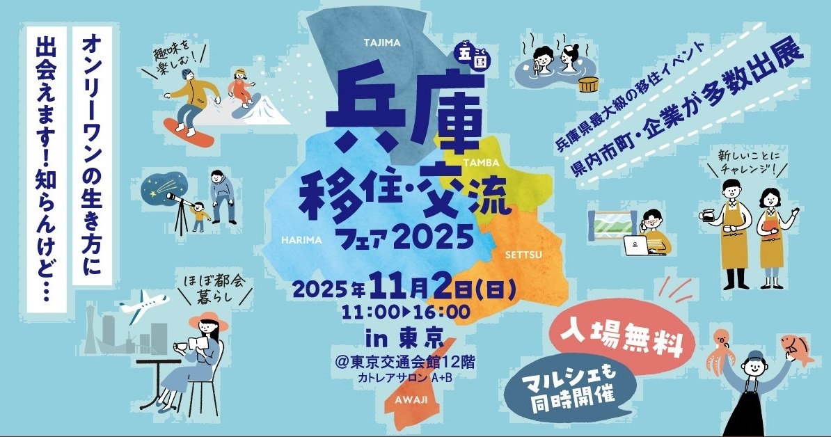 気候も風土も文化も歴史も異なる5つの国が集まってできた兵庫県。 ・都市文化が根付く市街地「摂津」 ・肥沃な播磨平野が広がる「播磨」 ・積雪と自然美の「但馬」 ・都会に近い田舎「丹波」 ・四国と本州を結ぶ「淡路」 同じ兵庫県でもエリアによって暮らし方も異なります。 住まいのこと、仕事のこと、子育てのこと。暮らしにかかわる全部を各市町の担当者と直接相談することができる兵庫県最大級の移住イベントにぜひ、お越しください。 当日は、ステージイベントやワークショップ(コウノトリの折り紙)が開催されるなど盛りだくさんの内容になっています。但馬牛が当たるチャンスも! ーーーーーーーーーー 日 時: 2025年11月2日(日)11:00〜16:00 ※途中入退場可 会 場: 東京交通会館12階 カトレアサロンA+B (東京都千代田区有楽町2丁目10-1) 入場無料・当日来場可 ※事前の来場申込をしていただくと、当日の入場がスムーズです。 ▼詳細・事前申込はこちら https://e-ve.event-form.jp/event/110652/hyogo-gokoku_iju_tokyo ーーーーーーーーーー 移住を検討している方はもちろん、まだ検討まで至っていないという方も大歓迎です♪ \たつの市がある西播磨エリアとは?/ 旧国名「播磨の国」の相生市・赤穂市・上郡町・佐用町・宍粟市・太子町・たつの市の4市3町からなる地域です。 わが町「たつの市」は、播磨の小京都と呼ばれ、レトロな城下町エリアです。 ■基本情報(2025年4月時点) ・人口:71,917人 ・面積:210.87㎢ ・人口密度:341人/㎢ (参考:東京23区:15,708人/㎢ ※2024年6月現在) ■気候 \晴天日が多く温暖。天気は穏やか!/ ・年間平均気温は約16℃ \雨が少ない瀬戸内式気候!/ ・年間平均降水量は1,000mm~1,500mm ■便利な交通環境 市内には、鉄道、路線バス、コミュニティバスや市民乗り合いタクシーが運行しています。 たつの市(JR山陽本線 竜野駅から)から主要都市までの所要時間 ・姫路:約15分 ・神戸:約55分 ・大阪:約1時間20分 他にも、 ・おでかけスポット:城下町散策/潮干狩り ・名物:手延べそうめん「揖保乃糸」/淡口しょうゆ ーーー🎥 町の紹介Movie「 私たちのたつの市」 https://www.youtube.com/watch?v=N1l8caOrMLg お伝えしたい町の魅力はまだまだたくさんあります。 移住に関する支援制度やたつの市での子育てのこと、住まいのこと、なんでもご相談ください!!