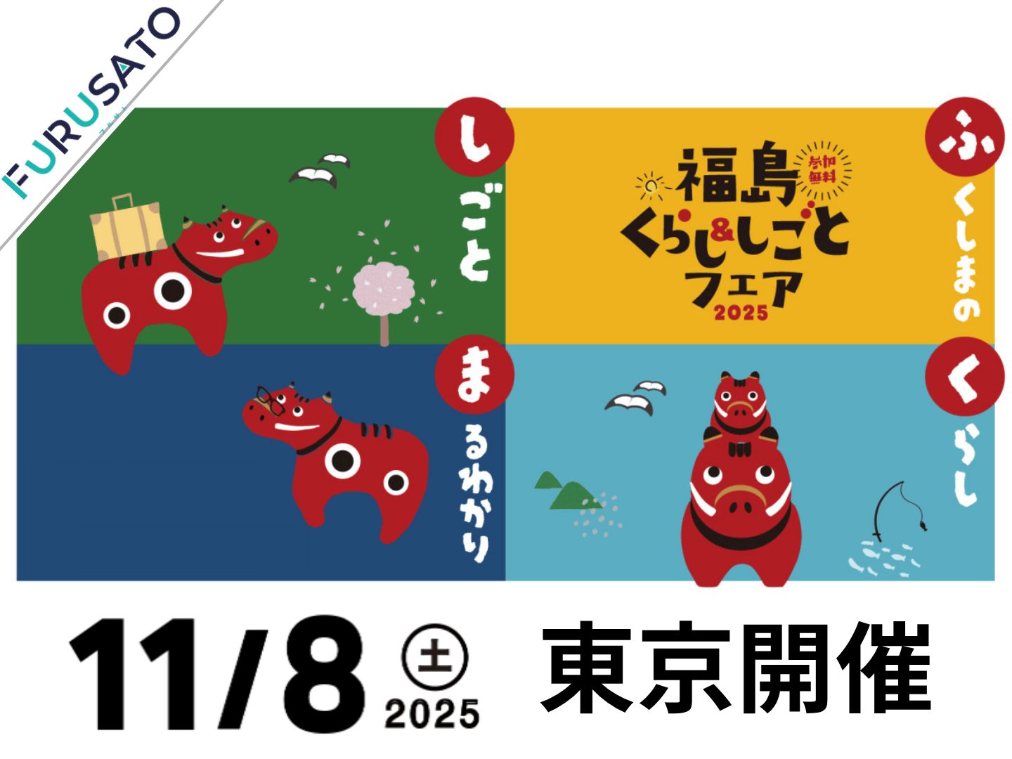 昨年に続き70団体を超える「くらし」と「仕事」の相談ブースが出展。 福島の全59市町村が今年も東京に集結します。 年に一度の福島県最大の移住相談会です。 ーーーー🐂 福島くらし&しごとフェア2025 ーーーーー ■開催日: 2025年11月8日(土) 11:00~17:00 ■会場: 東京交通会館12階ダイアモンドホール ■参加費用:無料! 事前予約で福島ゆかりのノベルティもプレゼント! 事前予約いただくことで、出展者が事前に相談者のニーズを把握し、提供できる情報について準備することで充実したコミュニケーションが可能となるためオススメです。 ▶予約はこちらから(10/31まで) https://app.spot-recorder.jp/150490_fukushima-kurashi251108/ ーーーーー \今年のフェアはここが違う!/ ☆仕事情報と住まい情報の専門ブースが充実! ☆WEBの来場登録で当日の来場がスムーズに! ☆カフェスペースを新設落ち着いた環境で検討ができる! ーーーーー \こんな人にオススメ!/ ・福島県出身で、いつかは福島に戻りたい! ・リモートワークが可能な仕事で、首都圏に住む理由がない! ・自然豊かな場所で、子どもをのびのびと育てたい! ・地方で働いたり、暮らすことに興味がある!