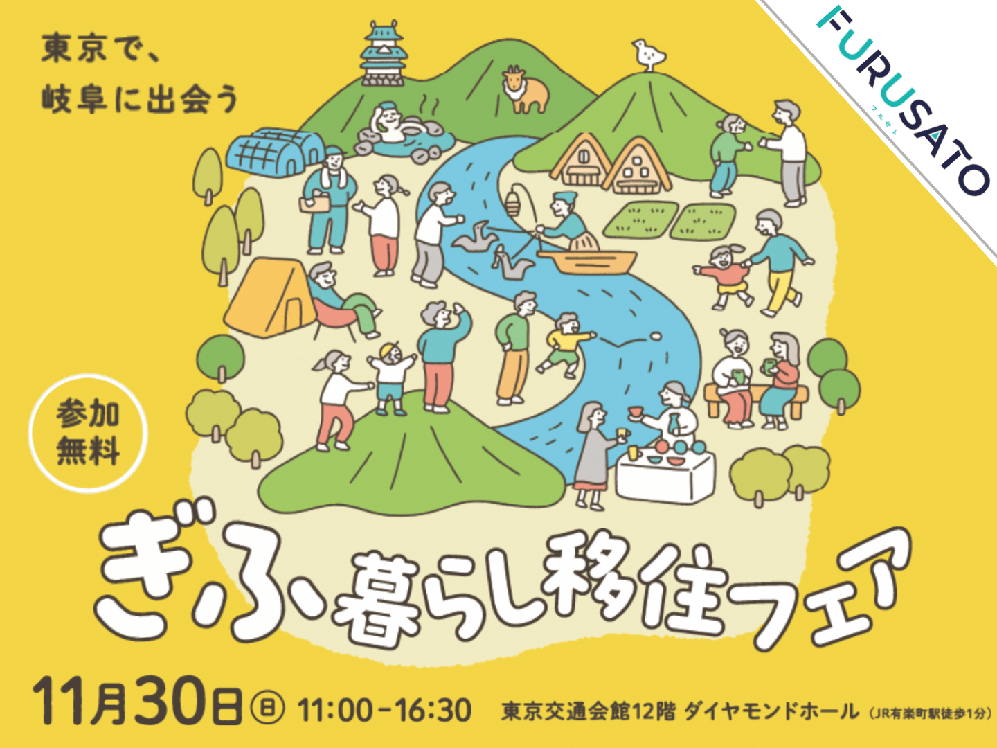 岐阜県内28市町村と13の関係団体が集結! 地元の情報が詳しく聞ける移住相談ブースや、5つの体験・ワークショップ、 先輩移住者による本音のセミナーイベントなど、 東京で「ぎふの魅力」に出会うことのできる、岐阜県最大級の移住イベントです。 ーーーーーーー ぎふ暮らし移住フェア ーーーーーーー ■開催日: 2025年11月30日(日) 11:00~16:30 ■会場: 東京交通会館12階 ダイヤモンドホール (東京・有楽町) ■参加費:無料! ※予約なしでもご来場いただけますが、 事前来場予約していただくと、当日スムーズに入場いただけます。 ■来場者プレゼント: 当日会場にお越しいただいた方には、 先着で「御菓子司 玉井屋本舗(たまいやほんぽ)登り鮎」をプレゼントします。 ■同時開催: 会場の東京交通会館3階グリーンルームでは、 「ぎふ就転職フェア」を開催! 移住相談に合わせて、県内企業への就職・転職についても相談できます。