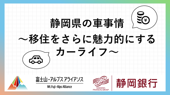 県内の道路は整備が進み、東名高速や新東名で県内外への移動もスムーズ。伊豆や山間部の景観ルートはドライブ好きにはたまらない魅力。静岡では駐車場も広めに整備されているため、手荷物があるときや大きな買い物の際も困りません。日常の通勤・買い物はもちろん、旅行やアウトドアにも車が活躍します。 --------------------------------------------------------------------------------- スタッドレスタイヤは必要?冬支度も簡単 静岡県の平野部は温暖なため、スタッドレスタイヤは基本不要。ただし、富士山周辺や山間部へ出かける場合や冬レジャーの際には備えておくのが安心です。雪国ほど頻繁なタイヤ交換が必要ない分、維持費も抑えられます。 --------------------------------------------------------------------------------- 快適なカーライフを支えるマイカーローン&オートリース 車生活を始めるなら、資金計画も大切。静岡銀行では車購入時に新車でも中古車でも利用できるマイカーローンを用意しています。また、静銀リースでは、車を所有せずに定額で利用できる個人向けオートリースを用意しています。負担を抑えつつ、快適なカーライフをすぐ始められるのが大きな魅力です。 --------------------------------------------------------------------------------- 静岡県での車生活は、日常をもっと自由で快適にしてくれます。ドアtoドアの移動で、毎日をアクティブに。手荷物や買い物も楽々運べる便利さ。そして美しい自然を感じながら、心地よく走れるカーライフ。移住後の新しい自分、新しい毎日をぜひ静岡で始めてみませんか? 脚注:https://cars-enjoy.com/media/?p=4210 静岡銀行マイカーローン:https://www.shizuokabank.co.jp/personal/loan/mycar/index.html 静銀リースオートリース:https://www.shizugin-lease.com/service/auto