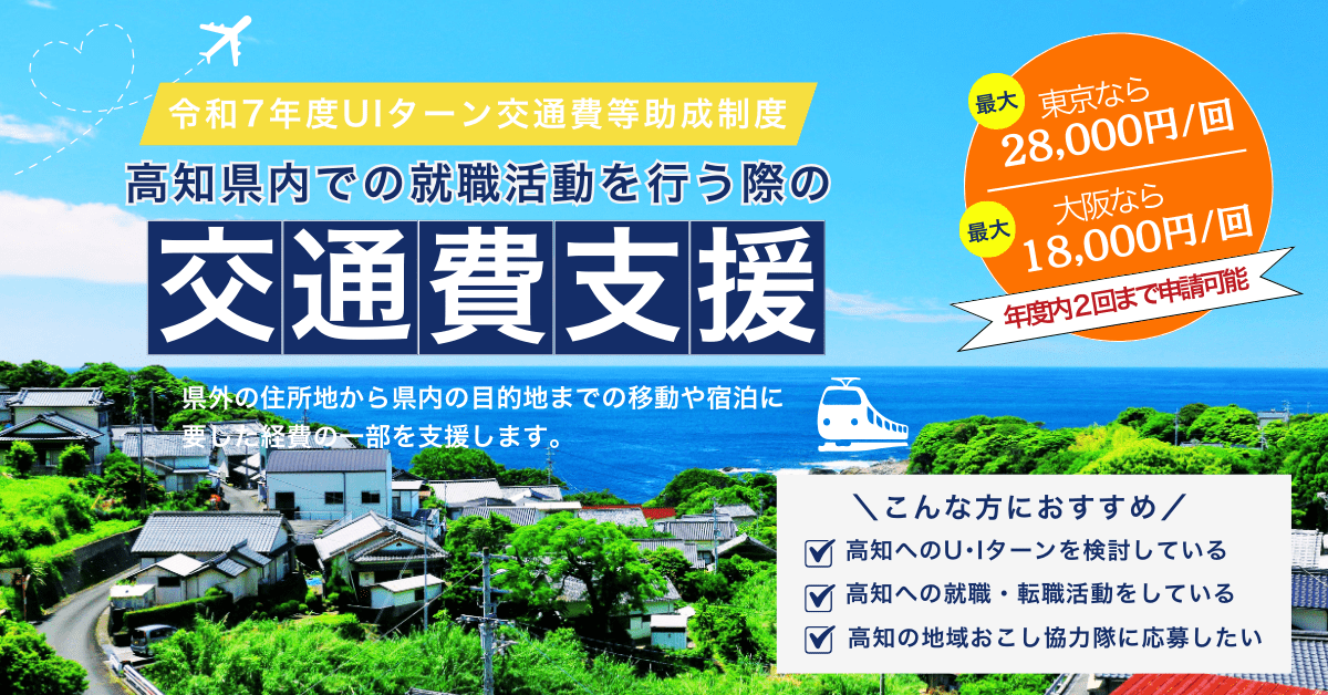 【名古屋☕】 📅開催日:1月17日(土) 🕑時間:10:00~16:50 👦予約枠:①10時 ②11時 ③13時 ④14時 ⑤15時 ⑥16時 📍会場:オフィスパーク 名駅プレミア会議室301(愛知県名古屋市中村区名駅4丁目5番27号 大一名駅ビル) 【東京🗼】 📅開催日:1月24日(土) 🕑時間:10:00~16:50 👦予約枠:①10時 ②11時 ③13時 ④14時 ⑤15時 ⑥16時 📍会場:高知県UIターンサポートセンター 東京窓口(支部)(東京都千代田区内幸町1丁目3−3 内幸町ダイビル8階) 【大阪🐯】 📅開催日:1月31日(土) 🕑時間:10:00~16:50 👦予約枠:①10時 ②11時 ③13時 ④14時 ⑤15時 ⑥16時 📍会場: シェアオフィス「The DECK(ザ・デッキ)」会議室(大阪府大阪市中央区南本町2-1-1 本町サザンビル) 高知県ならあなたの理想の暮らしが叶うかも! 相談会へのお申込み、お待ちしています✨ ※「【令和7年度】UIターン交通費等助成制度」の対象イベントです。 助成制度について詳しくはこちら⇒https://kochi-iju.jp/other/details_1638.html