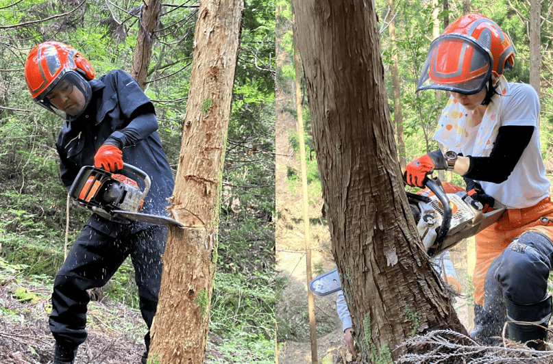林業現場の視察だけでなくチェーンソーや植樹などの作業体験のほか、