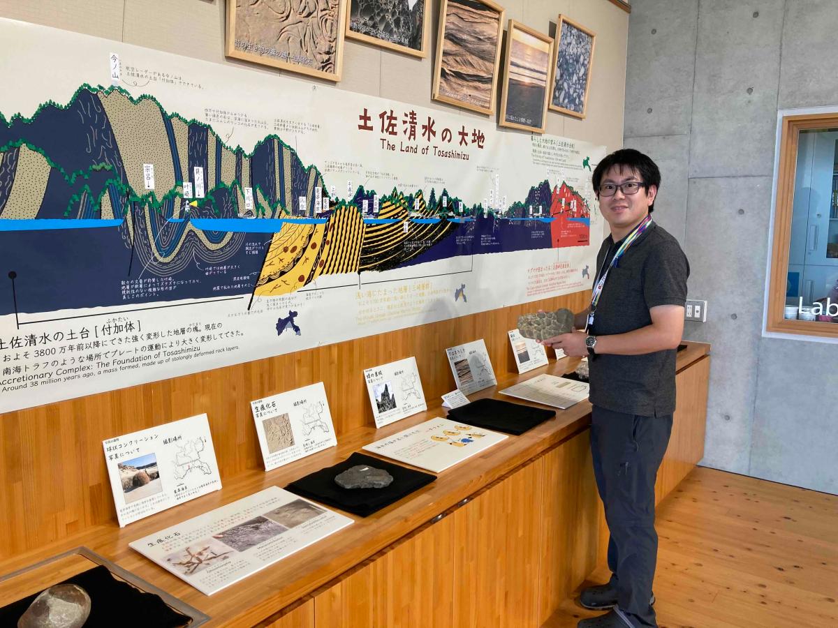 高知県・土佐清水市。青い太平洋と黒潮に包まれたこのまちで、自然と寄り添いながら暮らす移住者たちがいます。ジオパークの活動を通して地域の魅力を発信し、子どもたちへふるさとの価値を伝える――。都会を離れ、自分らしい生き方を見つけた二人のストーリーから、心豊かな暮らしのヒントが見えてきます。 土井恵治さん(トップ写真左) 冨永紘平さん(トップ写真右) 出身地:土井さん(愛知県)冨永さん(埼玉県) 現住所:土佐清水市 職業:一般社団法人土佐清水ジオパーク推進協議会 高知県の最南端・土佐清水市。 ここは足摺岬から愛媛県・宇和海へと続く足摺宇和海国立公園の一角にあり、黒潮の影響を受けた温暖な気候と美しい海中景観が魅力です。奇岩や断崖が連なる竜串(たつくし)地区を含む土佐清水市は、地球の歴史を肌で感じられる場所として「土佐清水ジオパーク」に認定されています。 この地で、自然や文化を未来へつなぐ取り組みを進めているのが、ジオパークを通じた地域資源の保護・活用と、竜串ビジターセンター「うみのわ」の運営を担う土佐清水ジオパーク推進協議会です。 観光・教育・研究の拠点として、地域の人々や訪問者に“地球の物語”を伝えています。協議会の職員6名のうち半数がIターン移住者であり、地域の魅力を発信する大切な担い手となっています。 今回は、その中から2人の移住者に、仕事や暮らしへの思いを伺いました。 【自然と向き合う第二の人生】 ● 土井恵治さん(東京都→土佐清水市) 気象庁に35年間勤務し、地震や火山の観測・情報発信に携わってきた土井恵治さん。 「もっと自然のそばで働きたい」という思いが募り、定年を機に新しい人生の舞台として土佐清水を選びました。 「もともと自然と関わる仕事が好きだったんです。都会でデスクワークをしていると、ストレスいっぱいで息苦しさを感じていて。そんな時に、たまたまジオパーク推進協議会の求人を見つけたんです。」 2021年4月、下見もせずに移住を決意。家も車も電話とメールだけで決めたという、まさに“直感の移住”でした。 「最初に驚いたのは、鉄道がないことでしたね(笑)。でも、地域の方々が本当に親切で、どこへ行っても声をかけてくれる。そんな温かさに触れて、不安はすぐに消えました。」 現在は事務局長兼ジオパーク専門員として、展示や案内、講座の企画などを担当。地域の自然や文化をどう伝えるか、日々工夫を重ねています。 「地質や自然の変化を、わかりやすく伝えるのはとても難しい。でも、関心を持ってもらえた時の喜びは大きいです。地元の方々にも、自分たちの土地を誇りに思ってほしいですね。」 夜は星空を眺めるのが好きだといいます。 「町明かりが少なくて、空が本当にきれいなんです。東京では見られなかった満天の星に、いまだに感動しています。」 土井さんにとって土佐清水は、都会の喧騒を忘れ、心と身体を癒してくれる“心のふるさと”。 「土佐清水の静かな自然の中に身をまかせて、もっと深く味わいたいですね。」