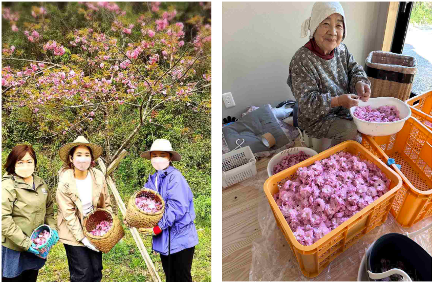 収穫はすべて手作業で、一房一房ていねいに摘み取り、選別していきます。皆さんが摘んだ桜の花は、SAKURA clubの商品原料となり、全国、そして海外へと届けられます。