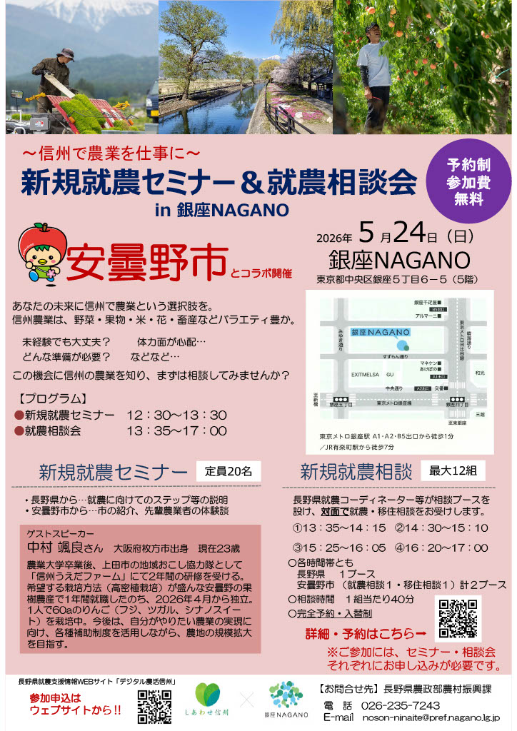 5/24(日)【長野県安曇野市】新規就農セミナー&就農相談会in 銀座
